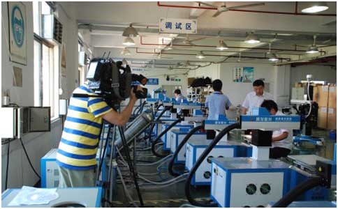 在鳳凰衛視的杜編導熱情的訪問后,通發激光副董事長王小峰帶領杜編導以及他的同事參觀生產車間,樣品車間,研發車間,了解通發生產的激光焊接機、激光打標機等。
