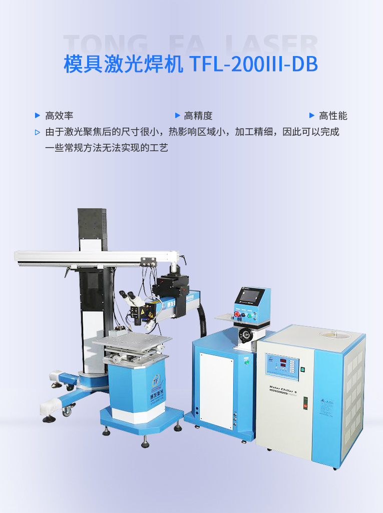 銀寶山新科技引進通發(fā)激光TFL-200III-DB模具激光焊機主要用于大型汽車模具的激光補焊,汽車配件塑料模具激光焊補,汽車內(nèi)飾模具激光燒焊,汽車保險杠塑膠金型激光修復(fù)。