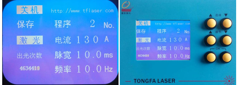 2、本首飾激光點焊機軟件可選擇中文或者英文界面,對不同加工位置選擇相應的激光焊接加工參數(shù)。由選擇按鈕移動光標到相應的參數(shù)位置,由調節(jié)按鈕調節(jié)參數(shù)的大小;