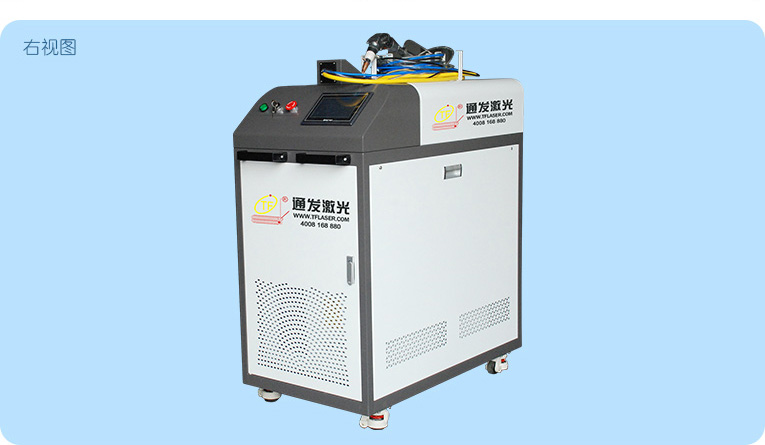 通發激光一體式手持式激光焊接機,用手持式焊接槍替代以前固定光路,手拿焊接,靈活方便,焊接距離更長,克服工作臺空間的局限性,工件尺寸不統一時無法自動焊接的情況下使用。主要針對大型工件、固定位置如內直角、外直角、平面焊縫焊接、焊接時熱影響區域小,變形小、而且焊接深度大,焊接牢固。是遠距離焊接大工件的較為靈活的全新的焊接工藝。