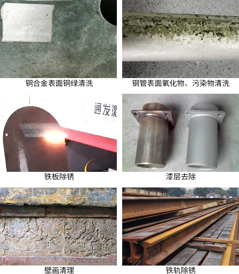 激光清洗具有無研磨、非接觸特點,不但可以用來清洗有機的污染物,也可以用來清洗無機物,包括金屬的銹蝕、金屬微粒、灰塵等,應用功效包括:除銹、脫漆、去油污、文物修復、除膠、去涂層、去鍍層。適用于銹層、漆層較厚,油污較深的情況下清潔,以及表面粗糙化、焊縫清潔等工藝環節,效率極高。應用行業:航空、船舶、文物保護、汽車周邊、食品行業、軌道、橡膠模具、其他。